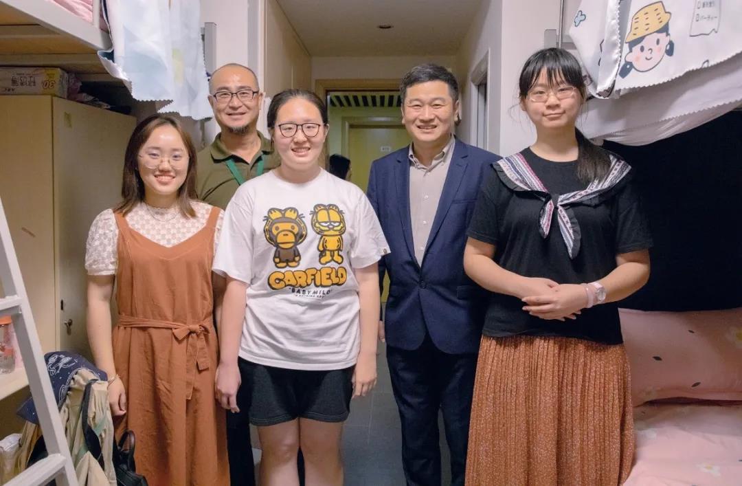 研究生院院长贾维嘉教授和林恬在女士探访研究生新生宿舍