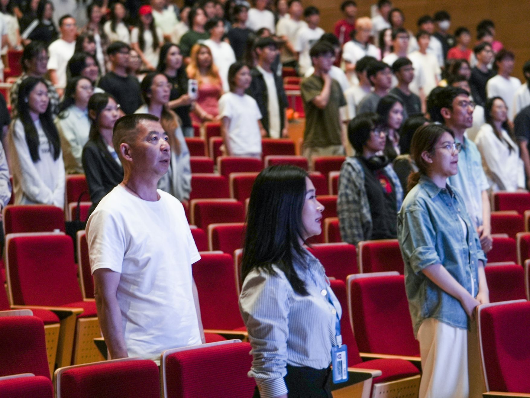 讲座最后,在于海教授的指挥下,全场师生起立,齐声高唱《义勇军进行曲》。激昂的旋律在大学会堂内回荡,每一个人的心中都涌动着对祖国的热爱与自豪。