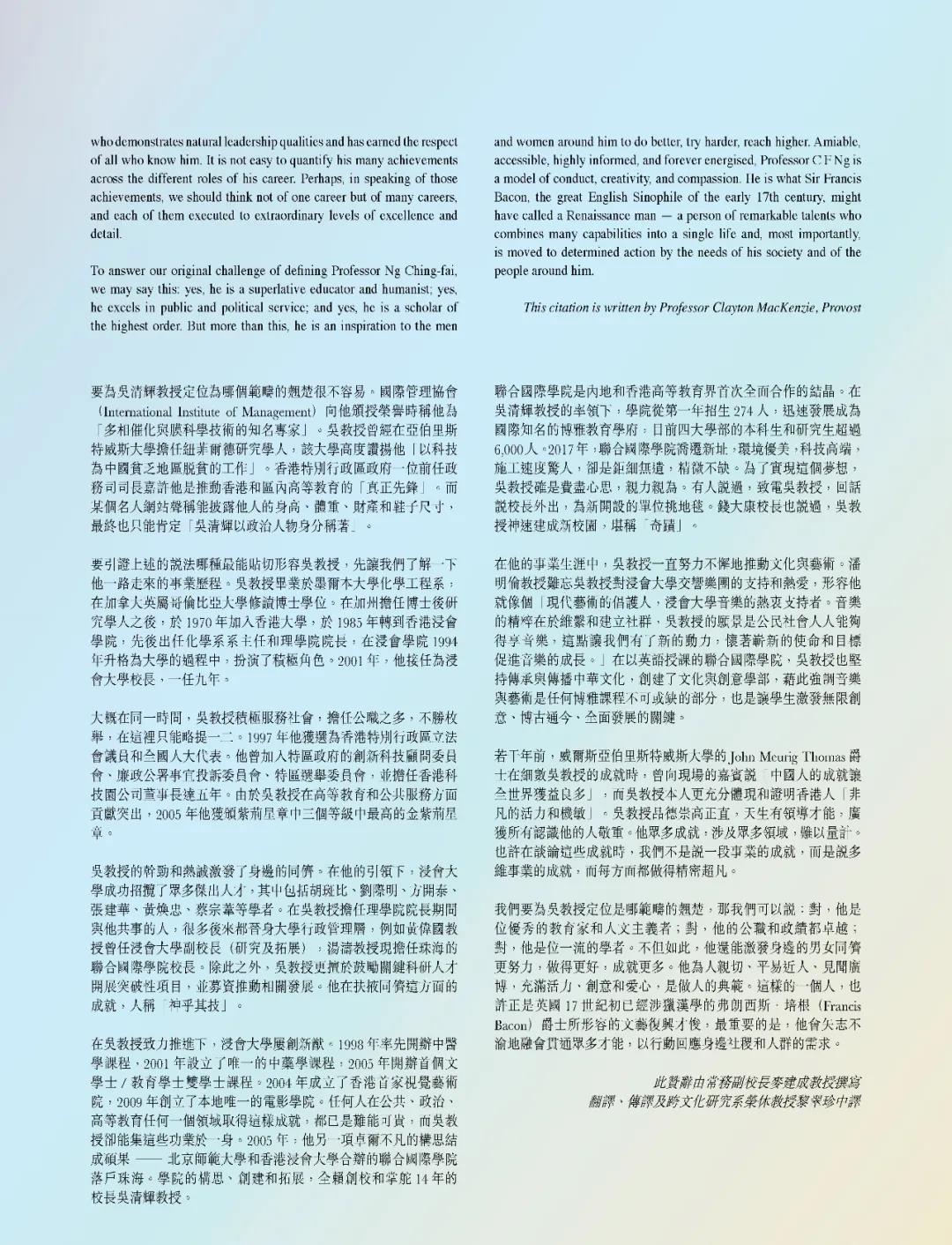 吴清辉教授是优秀的教育家、人文主义者和杰出学者,热心参与公共服务,成就卓著。