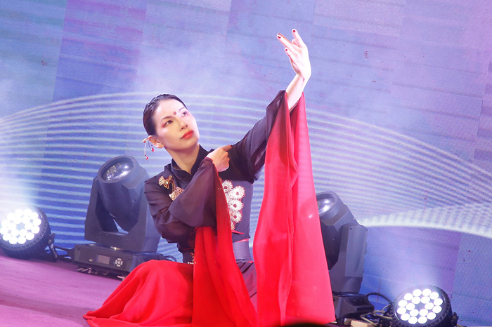 校长助理、学校办公室主任、研究生院行政处长林恬在女士带来别有风韵的古典水袖舞《沙华繁锦》。