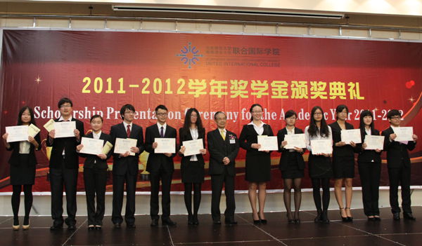 UIC2011-2012学年奖学金颁奖典礼于3月20日在高桌大厅举行,共208名学生获得表彰。奖学金設立人冯燊均国学基金会主席冯燊均先生及C.N.T. Limited总经理魏昭凤女士作为颁奖嘉宾出席了典礼。