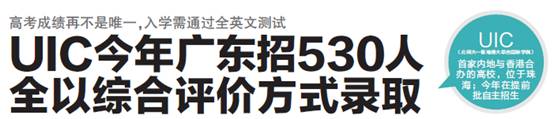 设在珠海的北京师范大学—香港浸会大学联合国际学院(简称UIC),今年将在广东省统招全面实施高考基础上的综合评价录取,并在提前批自主选拔招生录取批次录取。这也是首家内地与香港合办的高校首次在广东省进行招生改革的探索。昨日,该校分别在珠海、广州举行新闻发布会。据了解,该校今年在广东省计划招生530人,其中文科233人,理科297人,全部以综合评价方式录取。