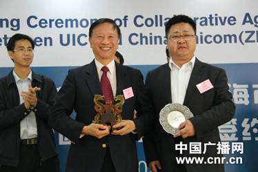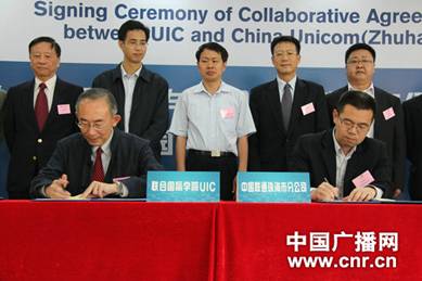| UIC副校长徐是雄教授与珠海联通副总经理纪家生先生代表双方签订战略合作协议 |