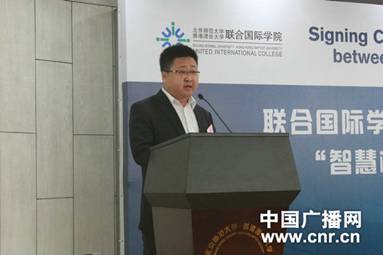 在珠海市政协副主席、市高新区管委会副主任刘青华,市教育局副局长邬向明,市科技工贸和信息化局信息化推进科科长张根以及UIC校长吴清辉、副校长张聪、协理副校长陈孟贤,珠海联通总经理张海涛、副总经理李桂、副总经理陶荣明的见证下,UIC副校长徐是雄与珠海联通副总经理纪家生代表双方签署协议。仪式由UIC四维教育协调办公室处长李黎主持。