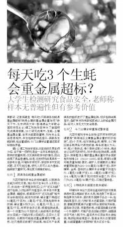 检测1淇澳岛生蚝重金属超标