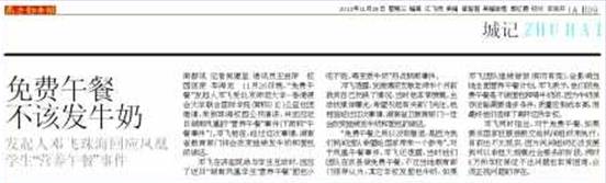 南都讯 记者吴建登 通讯员王进萍 校园信使李海龙 11月26日晚,“免费午餐”发起人邓飞受北京师范大学-香港浸会大学联合国际学院(简称U IC )公益社团邀请,来到珠海校园公开演讲,并回应近日湖南凤凰的“营养午餐”事件(下简称“午餐事件”)。邓飞相信,经过这次事情,湖南省教育部门将会改变继续发牛奶和面包的做法。