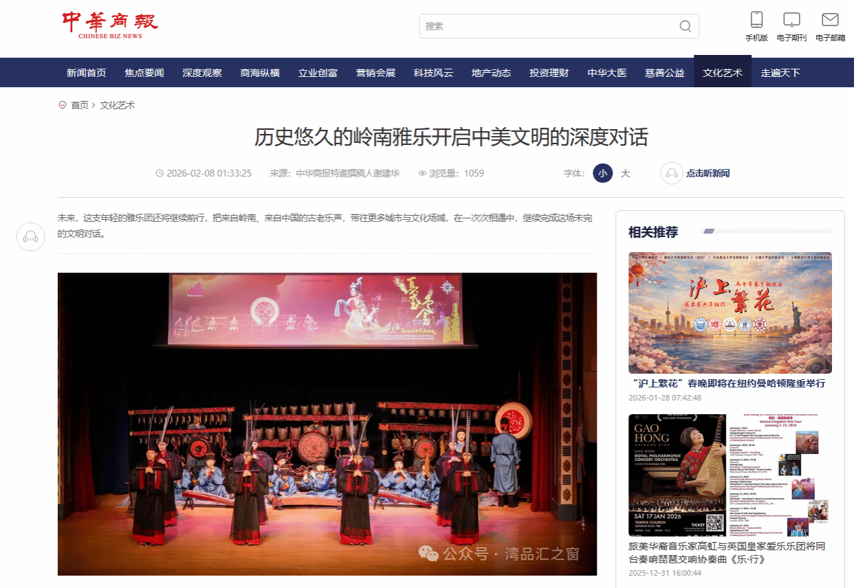 这不是一场普通的海外演出,也不是一次简单的“文化输出”。在2026年初的美国东海岸,一群来自中国南方的大学生,把沉睡了两千年的岭南雅乐带进了波士顿与纽约最具象征意义的公共文化空间,让古老的金石之声第一次完整地在美国主流社会被倾听、被理解、被回应。