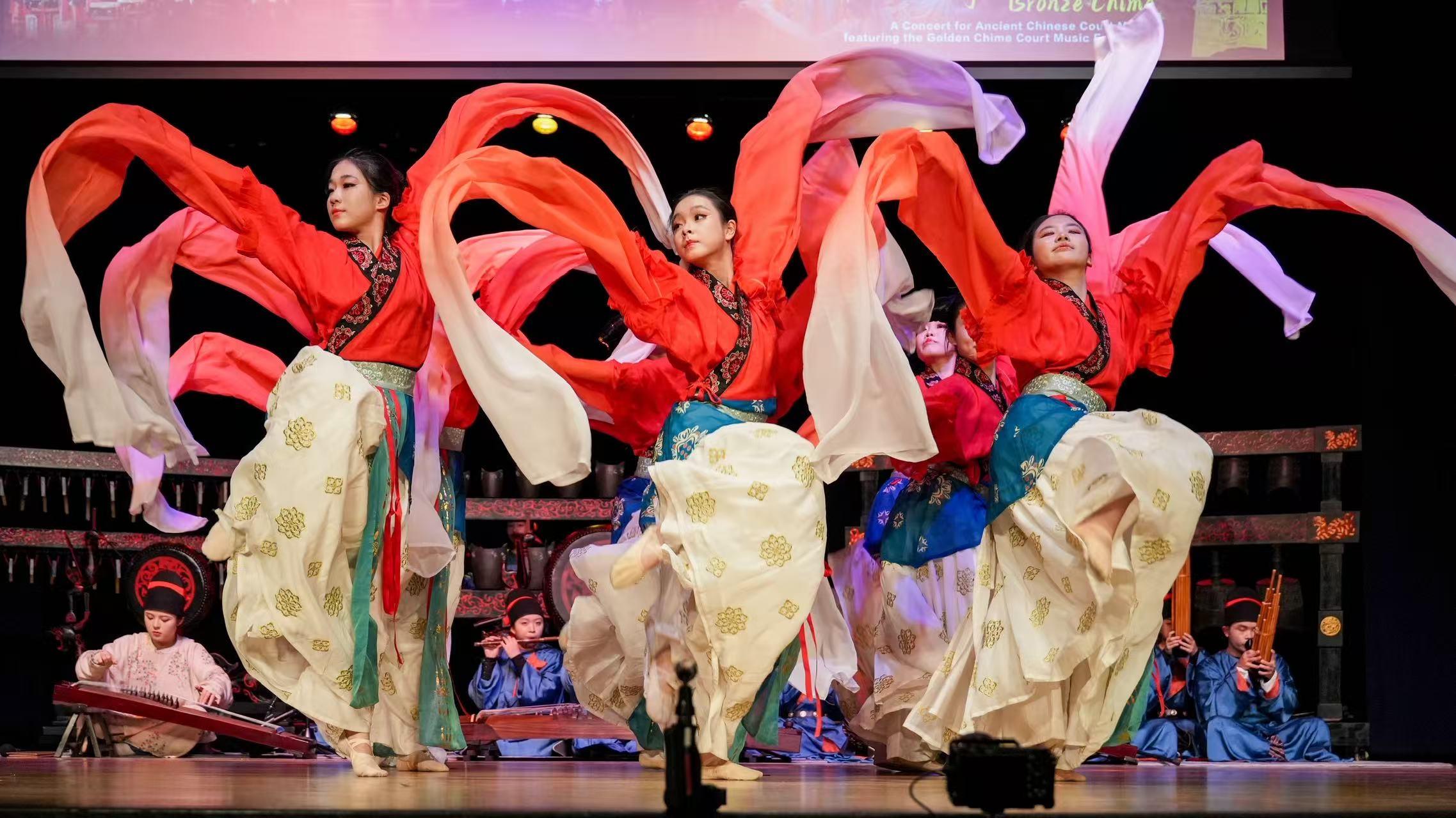 巡演选址波士顿与纽约,兼具文化深意与时代呼应。波士顿学术底蕴深厚、艺术生态成熟,纽约多元包容、文化活力充沛,与雅乐“八音克谐、和而不同”的核心精神高度契合。演出精心编排《朝乐-文舞》《望月婆罗门》《楚商》《龙腾虎跃》等九个经典节目,融合秦代仪礼、敦煌乐舞、楚地古调、当代民族打击乐与古典舞,一戏尽展中华文化多元一体的万千气象。