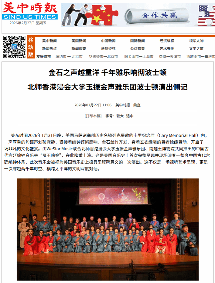 当编钟的余韵在波士顿古老的音乐厅中缓缓消散,它所激起的关于和谐、秩序与文明互鉴的思考,正如同金石之声,清澈、坚定,且必将传之久远。未来,这支年轻的队伍将继续他们的世界巡演之旅,将华夏正声带往更多角落,在每一次新的相遇中,寻找跨越文化的和鸣。