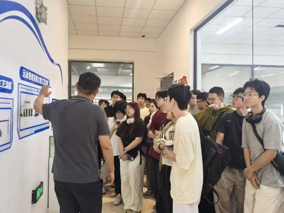 在厂区现场,师生们近距离观摩了餐厨垃圾从收运、预处理,到核心的厌氧发酵产沼发电,再到废水处理、残渣资源化利用的全过程。海宜公司技术人员结合设备实景,系统讲解了企业如何通过技术创新,将“城市废弃物”转化为“绿色能源”,并分享了在工艺迭代、设备选型及稳定运行方面的实践经验。同学们结合专业知识,围绕微生物代谢调控、设备抗腐蚀性等专业问题踊跃提问,学习氛围浓厚。