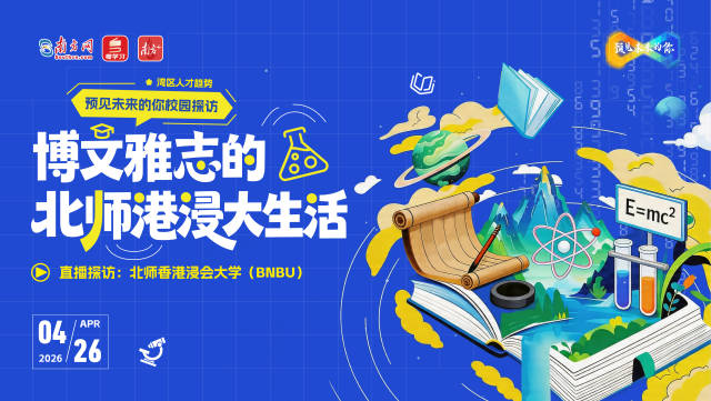4月26日上午 9:00,“湾区人才趋势-预见未来的你”节目邀你云探校,走进北师香港浸会大学(BNBU),解锁博文雅志的北师港浸大校园生活!