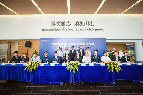 北師港浸大與涵蓋人力資源、互聯網、傳媒、會計行業,以及酒店、劇院等綜合服務類行業的十家珠澳企業昨日簽約,共建校企實習實踐基地,為UIC在校生提供更多的實習實踐機會。