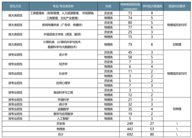 北京师范大学—香港浸会大学联合国际学院(下称“北师港浸大”)2021年计划本科招生2000人,招生范围覆盖全国30个省市区。其中,继续在广东省实施多元化招生,综合评价录取计划招生人数692人(首选科目历史249人,首选科目物理443人),普通本科批次计划招生人数80人(首选科目历史27人,首选科目物理53人)。