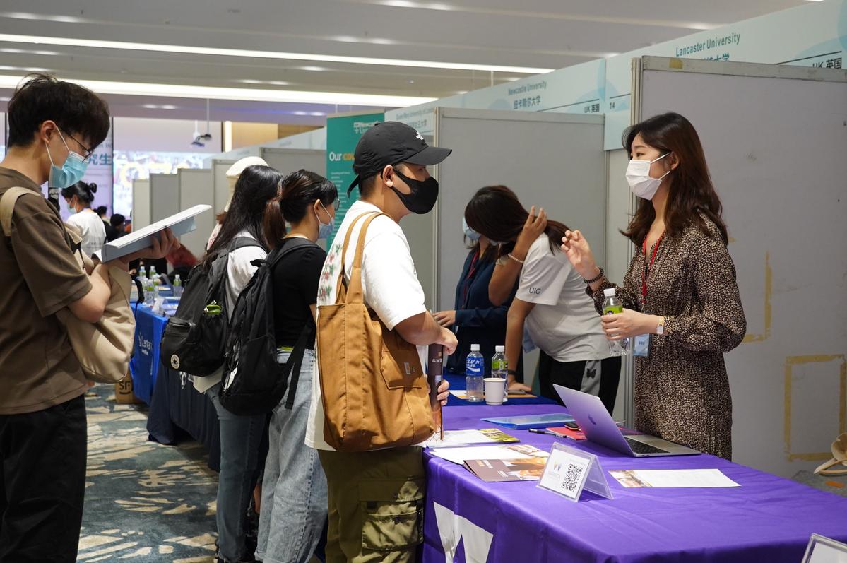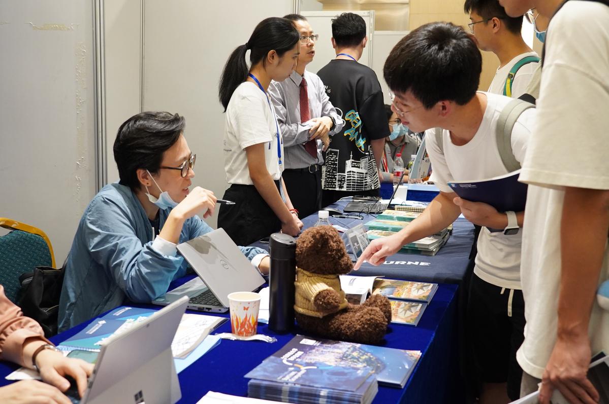 记者在线下展会看到,一个个咨询台前围满了前来咨询的学子们,双方就择校、申研的要求与方向等展开交流。来自2019级财务学专业的李嘉豪计划到香港高校深造,他认为UIC在留学咨询和讲座、交换项目和实习项目方面的资源很丰富。“每年举办的研究生教育展,让我对心仪学校的课程设置、招生要求等有了更深入的了解,对未来也有了更清晰的规划。”李嘉豪说。