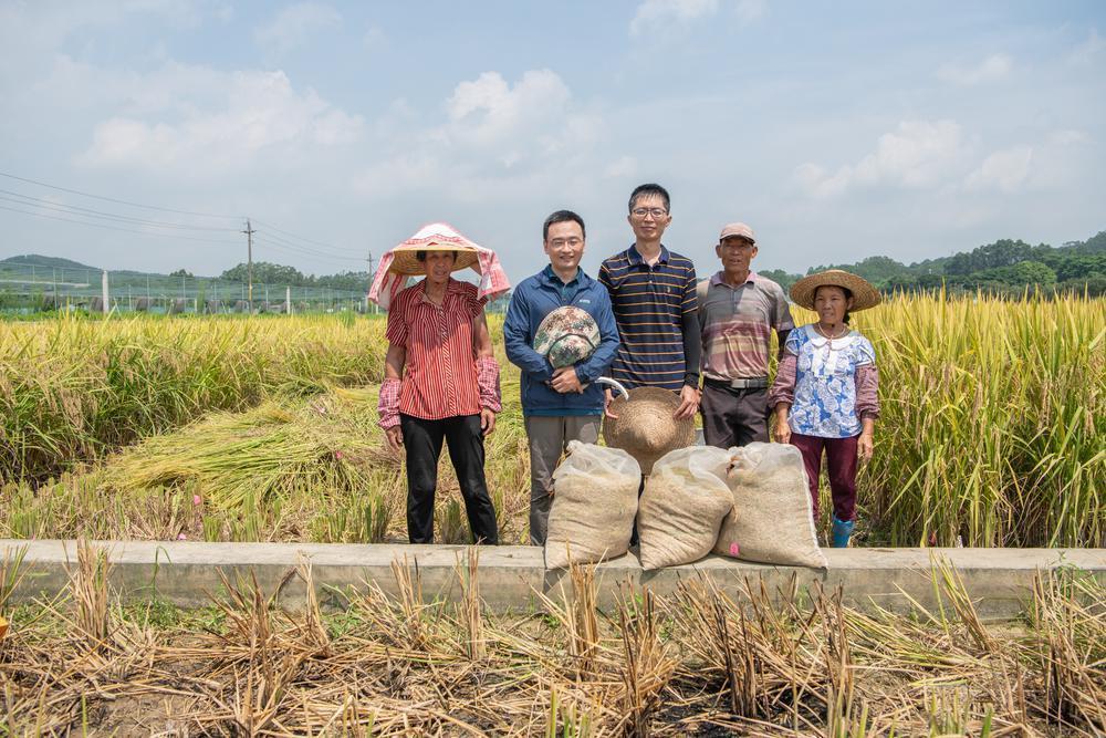 2021年7月9日华南农业大学科研人员对“太空水稻”进行收割
