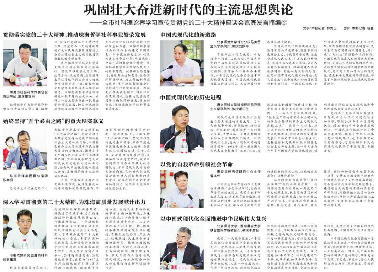 深入学习贯彻党的二十大精神,为珠海高质量发展献计出力