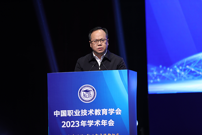 鲁昕作题为《职业教育强国:培养支撑现代化建设职教人才》的主旨报告。报告强调,服务强国建设,职业教育要落实好十大任务:一是为实现中国式现代化,培养强化现代化建设职教人才支撑;二是为实施科教兴国战略,优化类型支撑建设高质量教育体系;三是为建设现代化产业体系,夯实产业核心竞争力的职教基础;四是为推动创新驱动发展,承担科技成果转化职教的历史使命;五是为适应数字经济发展,培养具有数字素养的技术技能人才;六是为服务国家“四个面向”,重塑职教社会形象和关键能力;七是为塑造国家经济发展新优势,充分发挥职业教育功能与作用;八是为落实立德树人根本任务,完善德技双馨皆可成才培养机制;九是为满足人民对美好生活向往,培养行行出状元的时代工匠;十是为构建人类命运共同体,探索国际交流合作职教平台载体。聚力讲好职教故事,答好“强国建设、职教何为”的时代课题。