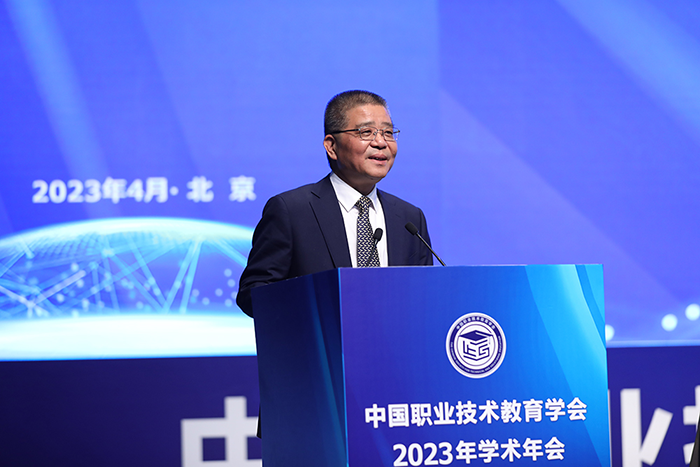 王定华在致辞中表示,2023年是贯彻落实党的二十大精神的开局之年,也是实施“十四五”规划承上启下的关键一年。开局关系全局,起步决定后势。召开这次年会,聚集思想智慧,共享真知灼见,正当其时,恰逢其势。近年来,北京外国语大学及外研社与中国职业技术教育学会联系紧密,在职业外语教材出版、职教师资培训等方面不断发力,精心安排,为职业教育领域广大老师和同学提升外语水平,提高国际素养,扩展国际交流,持续做出北外人的贡献。今后,将把相关工作做得更好。